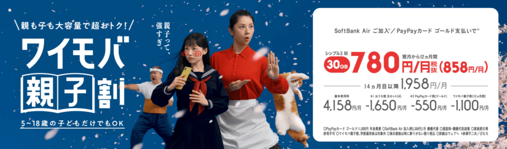 ソフトバンクのサブブランド。家族割や光回線とのセット割が充実し、家族全員でお得に利用可能。初心者向けのサポート体制も万全です。